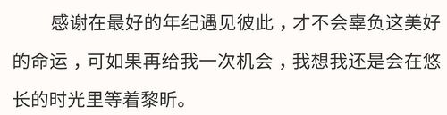 第一次看完《在悠长的时光里等你》是在高三的暑假,那时候我已经有太长时间没有认认真真追一部小说了,真的是一口气看了个酣畅淋漓,期间也不知道被感动哭了多少次,只是从那时候开始我对另一半的幻想一直停留在忠犬黎大帅的原型上。如今电视剧也翻拍了,这几天又是一口气追完了,青春真的历历在目啊。虽然身处在一个并不简单的家庭当中,但是黎昕却一直都很简单,喜欢什么就是什么,所以他能在刚认出骆熙的时候就去表白,情不知所起一往情深,即使骆熙喜欢的是蓝少杰,但是那又怎么样,他说过他一定会让骆熙成为他的女朋友的。喜欢就要得到,喜欢就要到最后,可以,这很黎昕。对于骆熙来说,黎昕更像是一个扫把星搅乱了自己原本很安静的生活,这个讨人厌的人总是阴魂不散,总是烦人讨厌,可是真心就是真心,黎大帅这样十年如一日的守候在她身边,悠长的岁月里终于等来了骆熙的回头。正如书中所说:感谢在最好的年龄遇见彼此,才不会辜负这美好的命运,可如果再给我一次机会,我想还是会在悠长的时光里等着黎昕。