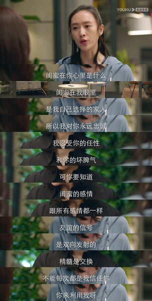 接着就是最戳我的了,田蕾和程璐的争吵。我一向是不爱称呼我的好朋友为闺密,但是她们在我心里的确最要好,和家人一样。这一段一开始我也是不能忍受田蕾的做法,和程璐想的一样,我就是生气你有困难竟然不跟我说。田蕾呢,大概觉得这不是什么原则性的东西,她知道她说了程璐肯定也会帮她。
