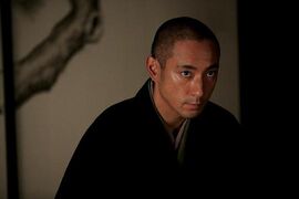 利休的同道知己,是戏份极少的制陶工匠。工匠见到高丽的茶罐,立刻眼睛一亮,随即一改之前对利休不冷不热的态度,以一种恳求的语气声音发颤的说,让我看看吧。利休也没有丝毫犹豫的就将其放在了工匠掌中,比起之前对丰臣秀吉要求看茶罐时的冷淡判若两人。至天下议论毁谤利休时,工匠则不屑的说了一句,不过是欲加之罪。