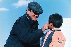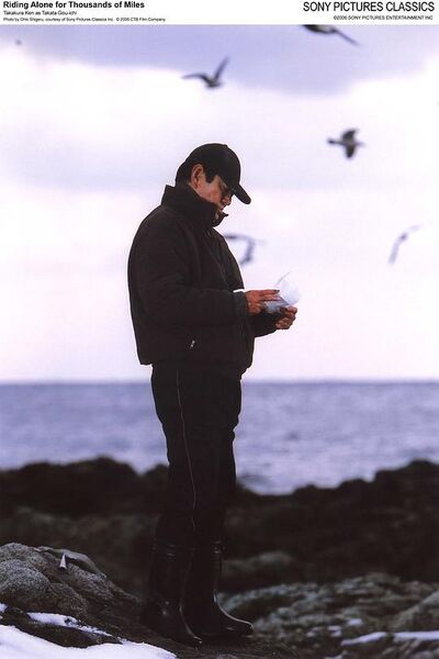 高田刚一由高仓健饰演。他是一名渔民,独自居住在日本北海道的一个小渔村。接到儿媳妇从东京打来的电话后,得知儿子健一病重住院的消息。尽管年事已高,但为了完成儿子的心愿——前往丽江拍摄电影《千里走单骑》,他毅然决定踏上这段艰难的旅程。在中国导游蒋雯的帮助下,历经重重困难,最终完成了为儿子拍摄这部电影的任务。