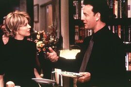 乔(汤姆•汉克斯TomHanks饰)和凯瑟琳(梅格•瑞安MegRyan饰)是生意上的竞争对手。凯瑟琳经营着母亲留下来的小书店,那里温馨宜人,已有40年历史,为街坊所熟知。乔却是同街一间大书店的老板,凭着自身优势,一开业就搞低折扣、服务佳的策略。凯瑟琳十分排斥他的入侵,白天二人展开斗法。不料晚上却在互联网的虚拟时间中结为挚友,不知道彼此身份的夜谈,让他们感情迅速升温。虽然他们都有自己的情侣,但网络中倾心的交往令他们决定要出来见见面。然而就在此时,乔却意外知道了这个网上知己的真实身份,从此对凯瑟琳有了全新的认识,并开始想办法接近她。最终,两人克服了商业竞争和个人情感的障碍,走到一起。与此同时,梅丽尔(凯蒂•萨戈纳饰)也与乔组成了家庭,成为他们幸福生活的一部分。