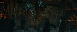 我发现最近猎奇的思想挺重,特别能挑战底线,而且是不断挑战底线。本来合计一部平台独播电影肯定也好不到哪去,但是上来不是网络登记号,而是“龙标”,但是院线我没看到它上过线。不过嘛,这有“龙标”也未必就是它的保真符,果然这部电影断断续续的看完,发现确实没有什么可取的地方。如果非要我找一处我观看这部电影的最主要原因,那就是想看看所谓的“烛龙”到底是个什么样子。本来就怕蛇,可这两年下来,看过的影视剧里,蛇还真是不少,完全没有想过自己的胆子什么时候变得这么大,果然是好奇惹的祸。只是,我对于这种嗷嗷大的蛇不怎么怕,这里的怕只是觉得它离我很远,而且我知道它是特效做的,所以暂时威胁不到我。但如果是那种寻常的蛇,我是真的怕。影片里的烛龙好像是个“双头”的大蛇,而且脑子上面还有个亮晶晶的东西,所以我一看就知道那是这帮进去的人想要的宝石。影片拍的没啥结尾,你要这个宝石是为了解决村民,打败瘟疫,但是最后拿到宝石就完事儿了。