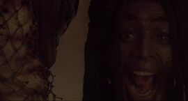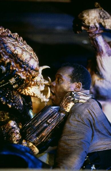 In the climactic scene, with the crew dead and the Predator and Captain about to battle mano a mano, the Captain is suddenly shot in the back by the last member of his crew, who was in hiding. Denied his trophy, the Predator angrily blasts the final crewman to hell.