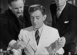 让我们从头说起,男主角Sidney Stratton 一开始在Birnley下属的实验室工作,因与主管Michael Corland意见不合而被开除(特斯拉与爱迪生的二元模式),这是他第七次因为同一原因失去工作了,但是他仍不放弃仍想在实验室从事他的研究。于是他应聘了Birnley的工厂,在那做苦力,以便获得进入高级实验室的机会。果然凭借对电子显微镜(1930'年代产生的电子显微镜,应该是头一次登上大银幕)的熟练操作而成为实验员,获得Daphne Birnley 的芳心并由此获得小BOSS Alan Birnley 的资助,开始各种实验(此处开启了诺贝尔炸药模式)成功研制出一种高分子聚合物,它持久耐用,防水防尘自清洁,只有300度以上高温才能破坏它的结构。