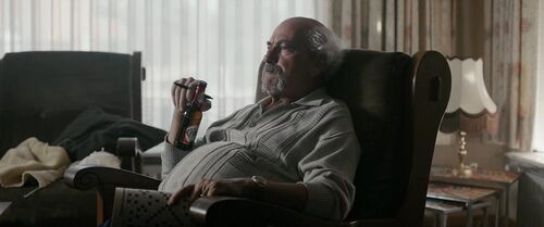 超爱这一段,极简的对白,被放大的背景音,突出了寂寥的色彩。洗车洗到一半下起的雨更烘托出马里奥的落寞。照片更是吊足了观众好奇心:空虚阴郁的马里奥,只见照片不见真人的男嬉皮士,这对大概率的父子,为何连照片都不能共处?究竟发生过什么?