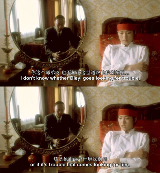 而段小楼放弃所有的原则,不断顺应时代的潮流,只为了保全自己。在程蝶衣被亲自收养的小四夺取虞姬的角色时,这既是夺走了他深爱的段小楼,更是夺走了他深爱的京剧。段小楼对程蝶衣说:“你真是不疯魔不成活呀,可那都是戏!”段小楼后来为了在文革中活下去甚至不惜揭发自己最深爱的人。