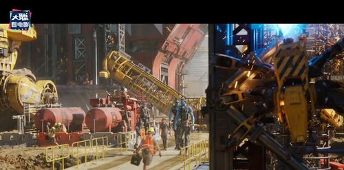再下一个画面要给到人类一点面子了,这里是潘多拉的人类基地地狱之门,看起来正在如火如荼的扩建,上一部人类挫败,如今卷土重来,现在连智能工作机器人也用上了。