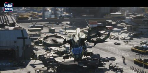 再下一个画面我们看到了熟悉的直升机,仔细看直升机前面的挡风玻璃更大视野,而且还有一层蓝色涂层,不知道是否更抗射,鸟瞰整个地狱之门航站港口,非常繁忙,人类已经在第一部决战挫败中重振旗鼓。