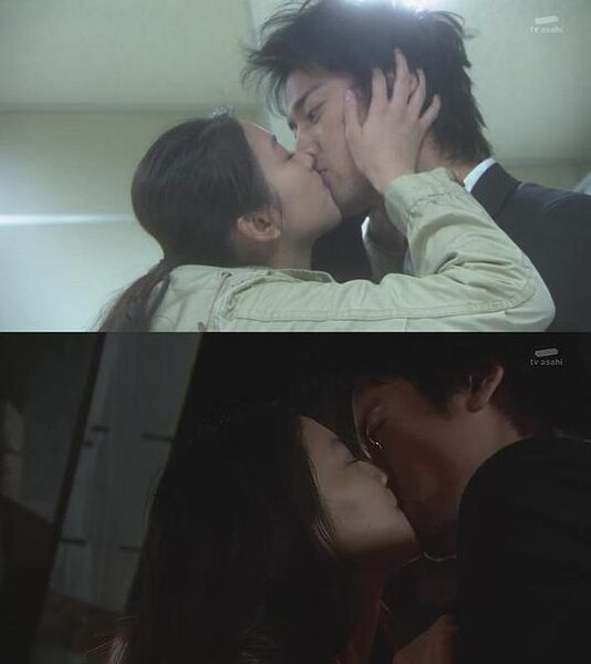 而与五月不同的是,有一个人出现来制止了摩子这种在他眼中“自甘堕落”的行为,那就是弓坂警察。不得不说,本集中最让我鸡皮疙瘩都起来的地方,就是最后,在她去接卖身的钱的最后一刻,他冲出来一把将她拽走。也许,这就是摩子在这段寻求自由却落入黑暗森林中,迷失无助时,冲出来的白马王子吧(其实叫黑马王子更合适)。于是,曾经矜持、而今迷失的大小姐,送上了自己的主动之吻。显然,警察同学被这个吻打动了,后来那个深深的拥抱,真的饱含深情。恰如摩子眼角流出的那滴泪。虽然,这个言情桥段,怎么看怎么不像是应该在日剧中出现的,不过楼主我还是很喜欢的。