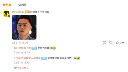 6.说到法律戏,我又想起在微博看到的一个专门靠黑国产剧带流量的大V。这个大V在解说视频里说女主这么多年过不了法考,已经是智力有问题了……于是我点开评论区,恰好看到了一些学法的网友的回复,欣慰真正看过剧的观众还是理性客观的。而且这位集美能在这样被各种黑的前提下说实话,真的很棒。