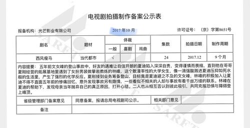 2017年十月,西风瘦马(也就是这部强风电视剧)备案。