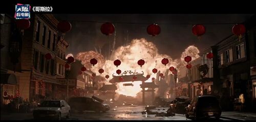 此时哥斯拉也抵达旧金山,雌性穆托和哥斯拉开始大乱斗,显然雌性穆托很难和哥斯拉势均力敌,眼看就要败下阵来,雄性穆托加入了战斗。