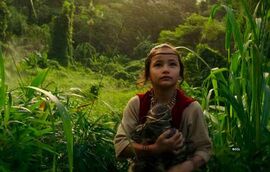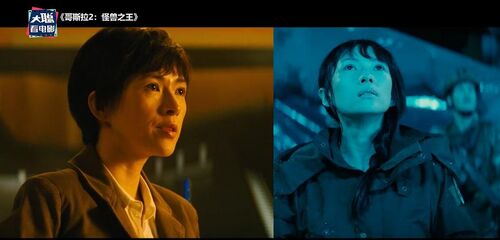 在中国云南这边,摩斯拉也破茧成蝶, 观看这个过程的,有章子怡饰演的凌博士,这位凌博士是双胞胎设定,章子怡分别饰演绑着辫子和短头发的。
