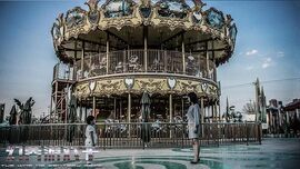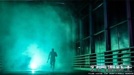 二是空间转换形式上的自如流畅,做到了在小空间中花样百出。如吴明等人最初进入游乐场的时候,是在平地上围着游乐设施转,但是第二次轮回时,同样的空间,却换了另一个视角和动线,使得同样的空间虽重复却不无聊,反而更加立体。值得注意的是吴明和许愿的关系第一次变得亲密时的地方恰好也是吴明将追杀者杀死的地方,构成了极强的视觉冲击力和情绪感染力。