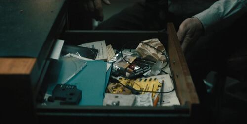 但其实可能不是开玩笑。至少在第二集结尾,当保安队来封锁斯劳屋的时候,Lamb的枪真的放在了第三个抽屉里: