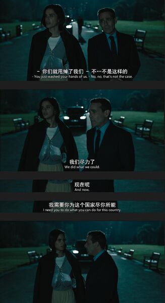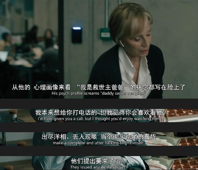 剧中她经常被Whelan的噪音打扰,最后也很清楚他会在清算这次调查工作的时候把责任推给自己,疲惫。