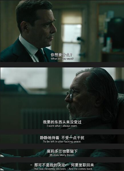 违约的杀手们,斯劳屋如愿阻止,谈判资本再 1.而一直忙着问问题和试图通过扔关键词来解决问题的Whelan,一边等待危机结束,一边思考把自己的烂摊子往哪里甩、怎么甩。正好牵扯其中的Judd打来电话,他们打算联手,把锅甩给Diana和斯劳屋。