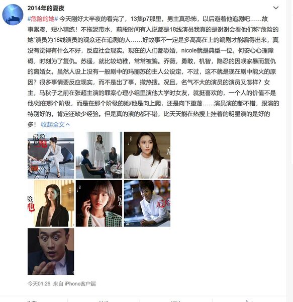 《危险的她》在爱奇艺上了几天了,作为一个一千来万的小投资,一直在一群几千万上亿元的大制作的夹缝中顽强生存着,据说已经破了现代剧分账剧的记录。豆瓣7分多,成绩符合我们的预期。接下来,我就简单谈谈,身为编剧在项目中得到的经验。