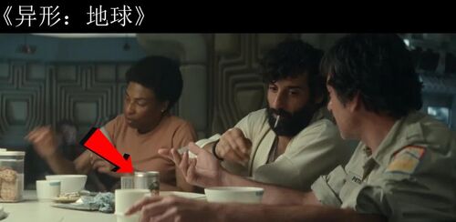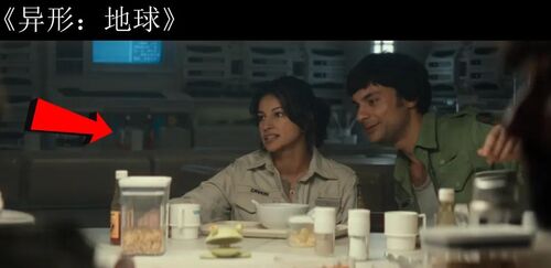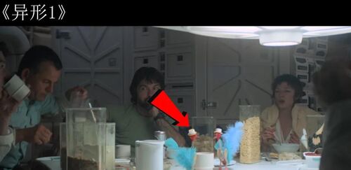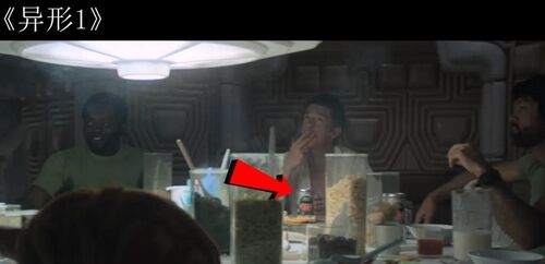 餐桌上出现了"阿斯彭啤酒",这是雷德利·斯科特为《异形1》特制的标志性道具,由维兰德-汤谷公司生产。