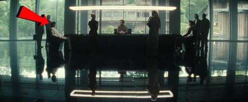 绿衣员工刚说完"四家公司统治地球",镜头便扫过天才公司会议长桌,左侧座位诡异地空着。