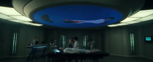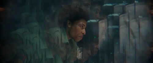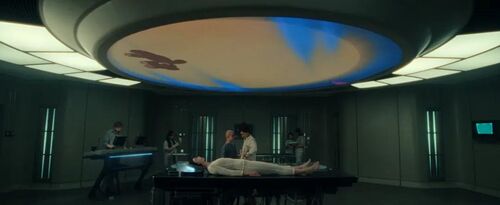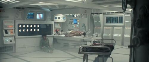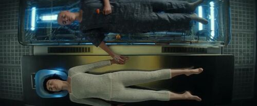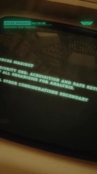 马奇诺号的内景镜头几乎逐帧复刻了《异形1》诺斯特罗莫号的开场:指令文字倒映在宇航员面罩上,"母亲"系统房间与诺斯特罗莫号如出一辙,同款冷冻舱缓缓开启。