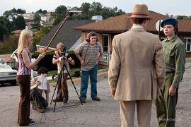 除了男女两位主角外,一心扑在电影上的小胖导演,戴着牙套的爆破弟,和身高与胆量不成正比的四眼哥,也都个性鲜明。再加上典型70年代美国小镇的背景设定,及小胖导演那人丁兴旺的一大家子,应该是能唤醒一代美国人的记忆。影片珍贵的地方正在于这些特定的时刻——自己因亲人离世而生出的不安全感,好友间因女孩而起的嫌隙,父子间因感觉不被了解而起的冲突,朋友共同为后来可能看着幼稚的梦想而努力,面对危险时同心协力共度难关,Joe和Alice之间从开始接触到互相理解的过程。而一直没有露面的外星人,作为一个神秘的未知力量,只是串连起这些点滴,并在最后给一部少年探险电影应有的大高潮。