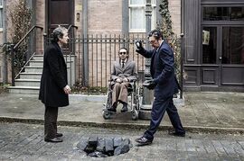 咖啡店温柔元气老板娘、暴躁高傲的戏多律师、老实善良的阿曼德,三个中年人之间化学反应都好强,以至于老板娘一脸磕cp般的姨母笑让两主角看起来更基了(对我来说,这是一部可爱又搞笑有些基也极具讽刺意味的黑色幽默戏,当然不一定每个人都能get到笑点。全片其实充满着夸张的舞台戏剧感,但也是因为这样,里面角色包括背景音乐的夸张都变成了恰到好处的点睛之笔,片头和乱入的动画似乎也不显得太过突兀。咖啡店马路边的那个大坑,被奥斯卡用作了盲人车祸现场的道具,最后结尾的“反转”更是极具讽刺意味。