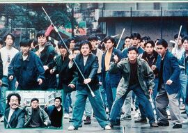 影片的副标题即是:错在黑社会的日子,片中对黑社会大哥的讥笑、对兄弟义气的嘲讽以及对江湖英雄片的揶揄,在我的印象中都是香港电影里最早的,它比《一个字头的诞生》早4年,比《旺角揸FIT人》同样早4年,比《江湖告急》要早上8年。同样的入骨,更加的酣畅。亚基看着《英雄本色》、《跛豪》、《我在黑社会的日子》、《教父三》等一堆的电影海报感叹:“为什么那些英雄片的大哥都那么威猛,而我们跟的大哥,不是混蛋就是混球,还都是短命种哩。”,阿飞教训他道:“去。目前的英雄片都是黑社会公司拍的嘛!当然拍的要多威风便多威风啦。不然怎会收得到那么多兄弟。”