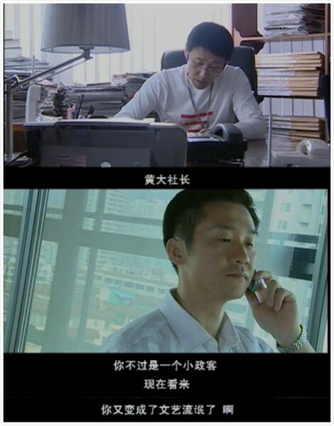 《浪淘沙》淡化了林啸民的“干部”身份,但小说中却写得很明确:“40岁接掌总编辑帅印,属于正儿八经的厅局级干部,是中国媒体圈少有的嘴上没毛就坐上高位的少壮派。”和那些老气横秋的报社一把手相比,林啸民干净利落,积极进取,是年轻人心目中的偶像,欧阳童也是因为他才进的《时报》。