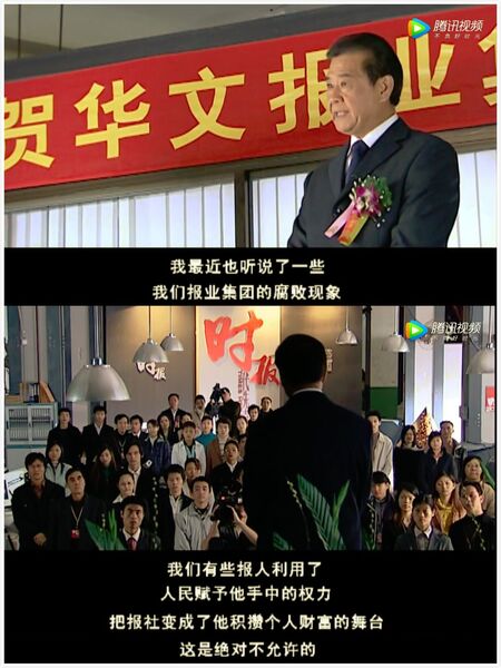 《浪淘沙》尽力将媒体和官场的胶着剥离开来,呈现出一种“政企分开”的假象,从而来表现“千古文人侠客梦”的情怀。但到了故事结尾,尤其是在陈道明饰演的林啸民一步步走向贪腐之路时,中国媒体的复杂属性又不得不凸显出来。