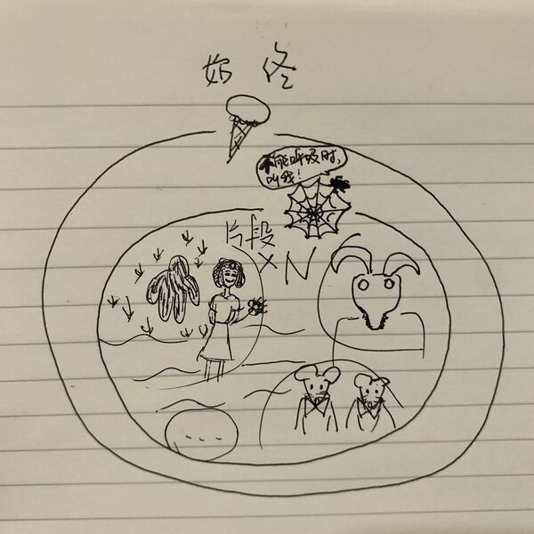 大胆揣测以冰淇淋为起始,男主进入了老太太设计的一个梦境,大梦境里嵌套了好几个逐步触发男主觉醒的小梦境片段。进入最外层梦境后,男主先套上“编钟”看了一段小梦境,返回第一层他以为是现实的梦境和角落里的蜘蛛聊了聊,又继续看了几段小梦境。大致像这样: