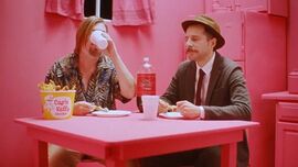 最直观的一层表达是电影里直接说出的ads。消费主义陷阱横行,你的欲望和行为是不是被资本操控/引导的?这一点非常明显,粉红小屋就是男主的意识,手拿各种肥宅快乐商品的老朋友就是商家派去的植入。后面也多次点题,不作赘述。
