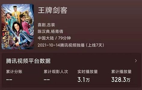 这部电影上映7天一直没有给出票房分账统计,但是从累计播放量328万估算,大概是20-30万,这个成绩可以说是惨不忍睹。