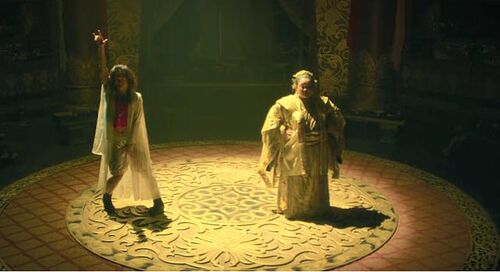 最后奇秀被抓,张简客为了救她决定参加武林大会,然后凭借跟寡妇村的人一起跳广场舞赢到最后。而陈汉典全程粉红女仆装的造型,可以说是让视觉不适到了极致。