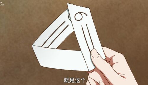 苇原论文中提到的正交对角转换器,以及“恐怖的对称”:6=9。女主经过一番研究给出了自己的解释:一个折叠成三段的纸条,纸条的两端分别写着“6”和“9”,折叠后“6”和“9”刚好重合,这就是所谓“恐怖的对称“,代表了空间的折叠。