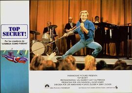 《笑破铁幕》由曾执导过《空前绝后满天飞》和《家有恶夫》的吉姆.亚伯拉罕斯、戴维.朱克及杰里.朱克三人共同导演。影片采用戏谑性手法制造喜剧效果,讲述了一名美国知名摇滚乐歌手尼克瑞受邀前往东德演出的故事。在东德期间,他邂逅了科学家佛莱曼的女儿希拉莉,并从她口中得知其父因制造致命武器而被囚禁的消息。为帮助希拉莉营救父亲,尼克瑞无意中卷入了一场间谍案。该片以极端夸张的方式模仿希契科克式的间谍动作电影,对××主义进行了深刻的讽刺,同时穿插了许多令人发笑的幽默片段和场景,是一部值得一看的喜剧佳作。