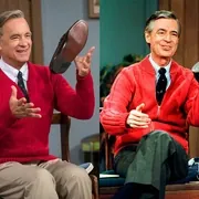据说这个著名的“沉默场面”在汤姆汉克斯的这部新片《邻里美好的一天》也会看到。非常有意思的是,在汤姆·汉克斯曾出演的影片《地狱来的芳邻》中,其中有一幕:他躺在床上,正是在看儿童节目《罗杰斯先生的街坊四邻》,这仿佛是一个穿越了几十年的惊天彩蛋梗! 而更加有趣的是,在维基百科上有写道:“弗雷德·罗杰斯是汤姆汉克斯的第6代表亲。”