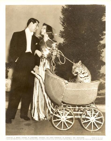 在美国电影史中,《育婴奇谭Bringing Up Baby》有着奇特的成名过程。在当年公映时,影片未能赢得观众的青睐,票房惜败。结果,导演霍华德·霍克斯Howard Hawks被雷电华公司解聘。为了避免对自己的声誉产生负面影响,凯瑟琳·赫本Katharine Hepburn支付了赔偿金与雷电华解约,从而避免出演该公司的下一部影片《凯丽妈妈的小鸡》。但多少年过去后,随着影片在电影回顾展上的放映和评论家的评论,《育婴奇谭》反倒越来越受到追捧,它被视为典型的美国喜剧,1990年入选美国国家电影保护局《国家电影登记片目》,2006年,根据美国权威杂志《首映》的评选,它荣列“史上最伟大50部喜剧”之册。《育婴奇谈》在1938年上映时,遭遇到了票房滑铁卢。女主角凯瑟琳·赫本更是被称成为票房毒药。而她的这次演艺生涯的低谷一直持续到1941年,靠着赌博式的投资并出演乔治·库克George Cukor导演的喜剧《费城故事The Philadelphia Story》并大获成功才得以扭转。有些研究者试图通过导演霍华德·霍克斯在影评届的被“平反昭雪”,来证明影片的票房失败更多的是由于当时的观众在审美认识上的局限性。霍华德·霍克斯的《育婴奇谭》现在被看做是上个世纪30年代最成功的神经喜剧之一。古板认真的古生物学家大卫(加利·格兰特Cary Gran饰)为他的博物馆集资,但年轻的苏珊(凯瑟琳·赫本饰)不断使其计划落空。后来他才发现这“豹”气十足的女子是一位百万富翁的侄女,于是他打算让她来为他的博物馆捐资。大卫拼命想搞清楚他遭遇到的这一系列怪事,而反抗精神特强的苏珊则认定这位难对付的先生是造成混乱的根源。两人围绕难缠的宝贝——猎豹巴比,发生了一系列令人忍俊不禁的故事...... 凯瑟琳·赫本饰演的神经质女主角任性、胡闹、热情真挚、敢爱敢恨,为了爱情甚至不惜使心眼耍手段,以东方对女性传统的审美观点来看,廉耻礼仪三从四德毫不沾边,无异一妖妇,但在崇尚个性和自然的美国人眼中,却对类似的女性推崇有加,文化的差异,注定亚洲观众难以对影片中的凯瑟琳·赫本产生好感;相反加利·格兰特饰演的傻气考古学家,坦诚又有责任感,略带知识分子的固执,与谦谦君子的气质藕断丝连,再加上帅气的外形,反倒更易获得亚洲影迷的青睐。 撇开审美的差异,霍华德·霍克斯在叙事手法和剪接上干净利落,镜头运用灵活,让整部电影的节奏异常明快,从相识到相爱,凯瑟琳·赫本千方百计阻扰加利·格兰特参加婚礼的情节令人莞尔,横刀夺爱在西方并不会受到更多道德上的谴责,凯瑟琳·赫本巧妙利用宠物豹俘虏了粗线条的加利·格兰特,一个狂热一个冷静,性格的光芒与缺陷相互弥补,可谓天作之合。出演大卫的是英国著名演员加利·格兰特,《育婴奇谭》是他早期较为重要的代表作。格兰特擅长演绎浪漫喜剧角色,他外形既文雅又富于喜感,浓重的英国口音,成为他的一个重要的形象标志。在这部影片中,导演霍克斯特地借用了一下美国早期谐星哈罗德·劳埃德Harold Lloyd的造型,让格兰特也戴上一幅黑框眼镜,塑造了一个文弱书生的形象。格兰特在剧中的表演不温不火,自然贴切,很准确地把握住了喜剧的节奏感。扮演苏姗的凯瑟琳·赫本专为此片接受了喜剧训练,她的夸张表演与格兰特形成对比,但在当年不为观众所接受。 《育婴奇谭》之所以受到今人的重视,是因为这部影片对美国神经喜剧(screwball comedy)这个类型的形成起到了重要的推波助澜作用,它具有明确的怪诞喜剧的主题和风格特征,是这一类型最为经典的作品之一。 语速快、对答机智、幽默是神经喜剧的另一个重要特征。这一特征在《育婴奇谭》里表现得十分突出。剧中人物苏姗的语速极快,她连珠炮似的语速与大卫的木纳、迟疑形成鲜明对比,既塑造了两种截然不同的人物性格,也使误会的产生成为可能,从而推动剧情不断向前发展。比如,在高尔夫球场上的那段戏里,大卫喊着“对不起,等一下”,试图阻止苏姗击球,但苏姗丝毫不予理会,依然果断把球击打出去,然后转身笑着对大卫说“哦,亲爱的,你不该那么做”,大卫原本想说“那是(我的球)……”但却被苏姗的话引开,改口问道:“不该做什么?”“别人击球的时候你不该说话”,大卫刚要解释,还张开嘴,苏姗就接着说:“不过,我不怪你,因为刚才那一击打得不错”。然后她转身快速离去。她根本不听大卫的解释,总是自说自话,按照自己的兴趣发表意见,大卫解释说他们使用的高尔夫球不同,她用的是PGA,而他的球是Crowflight,苏姗回应说自己更喜欢PGA,大卫告诉她PGA的球上有两个圆点,而Crowflight的球上是个圆圈,以此证明那个球是自己的,苏姗却回答说自己可不迷信球上的图案,弄得大卫哭笑不得。两个人的对话就像两股道上跑的车,苏姗完全自说自话,语速和对答都很快,大卫总是慢好几拍,费好大力气也无法把自己的意思传达给对方。在后面的很多戏里,编导都使用了同样的方法,苏姗总是为所欲为,说起话来天马行空,无拘无束;大卫则常常是张口结舌,有理也说不清。不合拍的对话使影片喜感十足,强化了苏姗的任性与率真和与大卫的文雅与木讷,使两个人物性格之间的性格色彩形成很大反差。直到1966年,《育婴奇谭》才在德国首映,德国电影观众认为他们看到了本世纪最出色的喜剧片:《育婴奇谭》的德语版片名叫《不要吻豹子》(Leoparden Kusst Man Nicht)。 凡是看过这部影片的