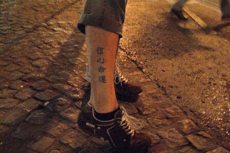 我送了他俩一对筷子,Ahmed曾和女友下过中餐馆,“我甚至能用筷子夹豌豆呢。”分列时,他撩开他的裤腿,右脚踝上方竟刺着四个中国字——信心命运,那时在图兹拉等待爸爸和哥哥消息时纹上去的。Ahmed当然清楚这四个字的含义,而我也希望这双筷子能替代复仇的刀子。