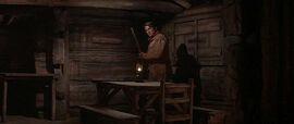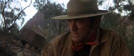 电影虽然没有最终让印第安人成为绝对的大英雄,但是导演的镜头语言依然具有明显的倾向性。比如野豹猫夜闯小屋的时候,野豹猫小心翼翼,在他露面的一瞬间,躲在暗处的山姆立刻开枪,可是他并没有拿下不速之客,而是反倒让他给跑了。通常西部片的英雄可是很少犯这种失误的,因为定点瞄准这种活儿向来都是西部帅哥的囊中物,偏偏英俊的山姆把它给搞砸了。片中几乎没有出现野豹猫的正面镜头,所以最终我们都不知道他究竟长什么样子,因此有点神秘游侠的意味。导演并没有把印第安人当作坏人和反面角色来塑造,而是在有意减少其出镜率的前提下,正面修饰他们的存在,缓解了现实中印第安人和白人之间剑拔弩张的紧张关系。