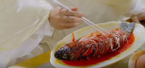 然后道具也是可怜巴巴的,一道鱼能给你翻来复去地拍。I know这里剧情是凸显帝君厨艺真的很烂,但是也不用把淋在上面的酱汁搞成这样(像便宜爆炸的血浆)