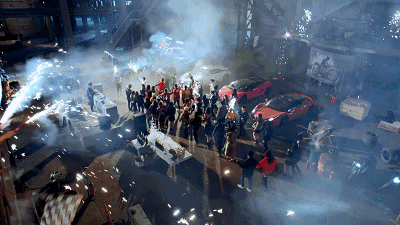 好不容易要开始赛车,导演怎能放过这种大场面,疯狂换机位,足足拍了一分钟的起跑线。