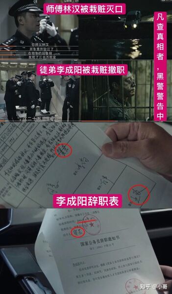 2、14年前「高赫杀人案」「麦自立案」❶高赫杀人案:2004年,高赫因强j杀害了麦自立表妹而被判了死刑,为救儿子,高明远和贺芸买通法院和监狱,一番运作后,高赫得以假释(死缓→20年→违规减刑),出狱后改头换面,整容成了现在的孙兴。❷林汉案:某日,麦自立在街上溜达,意外看到假死的高赫上了高明远的车,并告诉了同学林汉,于是林调查核实,发现高赫被保外就医,并汇报了上级贺芸,怕儿子事情败露,贺告诉了高,高企图用30万贿赂林,林不肯,于是高指使老宁杀了林汉,连人带车推下江里,并买通法医宋涛伪造了林汉的尸检报告(死亡鉴定书4月11日),为防李成阳追查,高指使贺用20万把李成阳陷害成了黑警。最后,李成阳被撤职(6月15日),离开警队后,被黑涩会一直追杀,10年前被马帅从铁笼子里救出,之后加入新帅做了法律顾问。当时在李成阳辞职表上签字的有4人:贺芸(石门区分局局长)、李尚(时任市公安局长)、万声、王政(时任绿藤市委副书记)。可见保护伞之大。