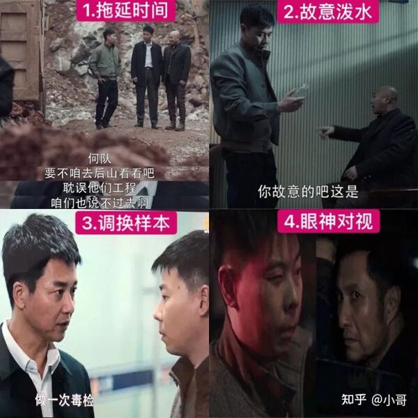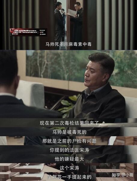 第1次:李成阳要求部里毒检,样本被宋涛替换第2次:何勇叫裴伟去北京毒检,样本被调换,第3次:何勇暗中采样毒检,结果是"蓖麻毒素"中毒;4)眼神对视张桐生(第19集)在抓捕张桐生时,何勇只派裴伟带两个人去抓,故意给裴伟创造通风报信的机会;果然,裴伟主动分配人员,自己独自留守后门。就在张桐生被捕后,裴伟和他有一个眼神上的对视;张被审讯时,只承认自己投毒,但拒绝承认受人指使,态度强硬。其实,何勇早已料到审讯结果,因为不论是马帅、宋涛、还是陈建波,他们的背后都有同一个大佬在指使。