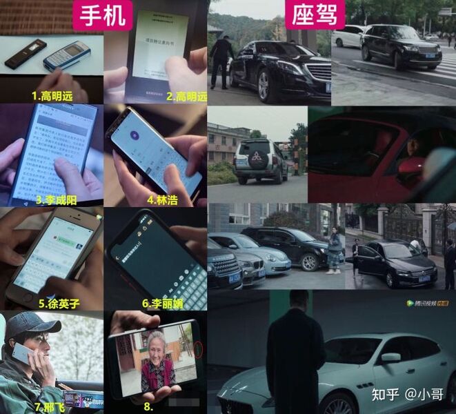 14、盘点大佬们用的手机、座驾~高明远:诺基亚3100、三星翻盖机w2018?奔驰S400,副驾驶改装成假山茶座,不愧是大佬。李成阳:索尼XZ、路虎揽胜,大佬级座驾;林浩:三星S9、三菱帕杰罗,高达40万;徐英子:苹果;大嫂:苹果、玛卡拉蒂总裁,160万;符合大嫂性格。邢飞:锤子坚果3;何勇:大众探岳,符合人物身份;贺芸/董耀:大众帕萨特,官车的代表;黄希:大众甲壳虫,30万以上;孙兴:保时捷718,167万,符合他的烧包性格;还有一些群演车型:宝马X1,道奇酷威,陆巡,5系。绿藤市民的生活水平是真的不一般啊!