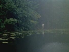 小男孩别佳在太阳雨下撑着伞独自站在池塘边久久地观赏着奇妙的景色,他是影片作者的化身。