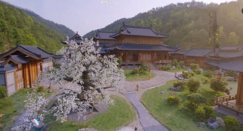 为了给“明海恋”这对CP的感情打光,剧中将方鉴明的府邸设计得美轮美奂。青石径、白沙潭,亭台楼阁、回廊飞檐,尤其是庭院中那株繁花茂密的大树,更是承担了浪漫、唯美的重任。