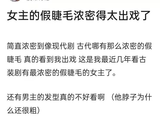 但就像网友说的,假睫毛过于浓密了。无论是正面还是侧脸,卷翘的长睫毛都在抢镜。都恨不得将“我是女扮男装”的标签贴脸上了,其他人还要强装着看不出,真是不容易。