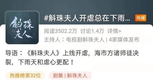原本就已经套路满满,剧方还嫌不够,又推了个“开虐总在下雨天”的话题。
