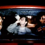 从我个人来说,这电影的三个故事里,最喜欢的是这个故事。这部电影原名为《MYSTERY TRAIN》,直译中文应为《神秘列车》,影片开始的一个固定机位镜头里,是一对日本少男女面对面,分座于火车列车座的两端,居中的列车车窗里,不停缓缓闪过美国南部的丘陵、树丛和平原景色,此背景前的两个人,少女表情天真,男孩一脸扮酷,还时不时很拽地玩弄打火机和抹顺自己锃亮的头发。